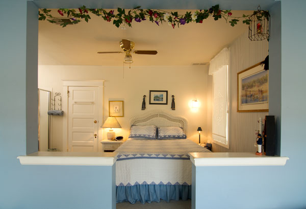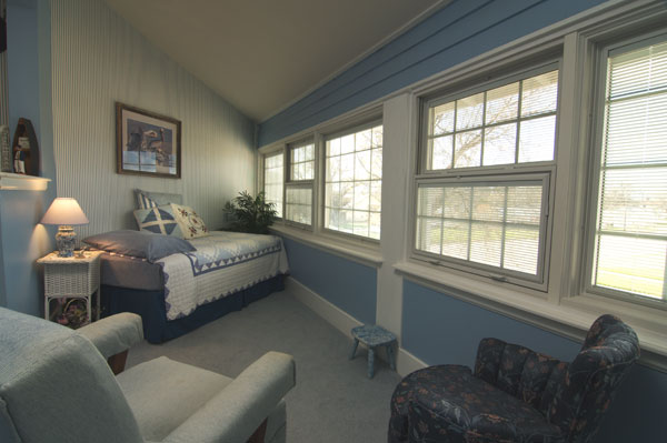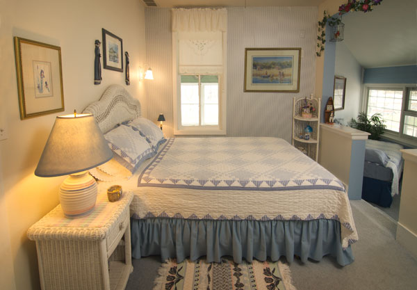 Southwest Nebraska is referred to as the "Prairie Lakes Region" because of the many fine reservoirs and lakes. This sunny room in country blues and white wicker is designed to reflect the calm soothing effect of being on the lake. Enjoy our beautiful sunsets from the privacy of your balcony or the comfort of your queen-size bed. 3/4 bath with shower which is exposed to the room, USB ports and a twin bed on the enclosed balcony area which is part of the room. This room will accommodate three guests. Room rate is for two people, add $15/night for each additional guest.